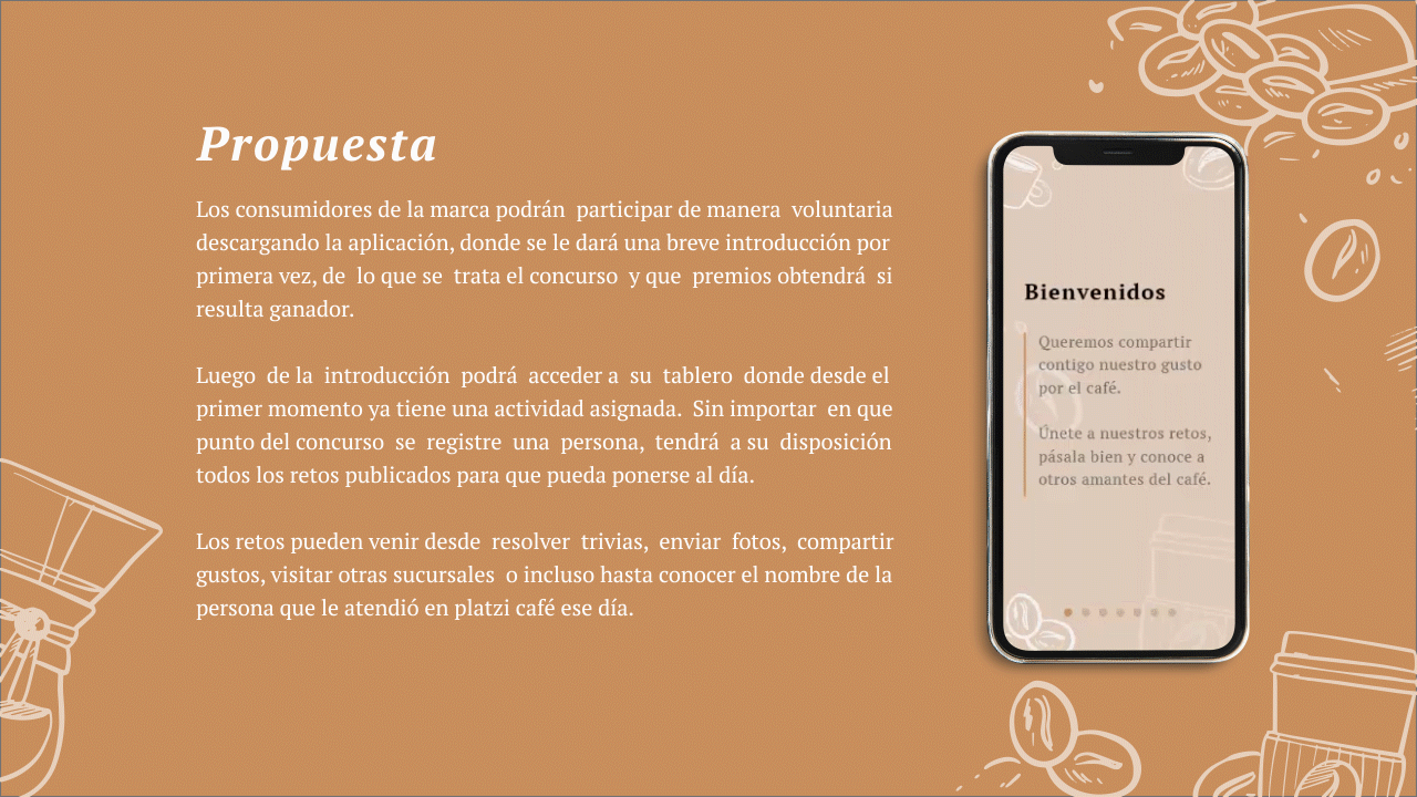 La propuesta fue desarrollada para incentivar a los clientes a la compra de café con la intención de acumular puntos para ganar un premio.