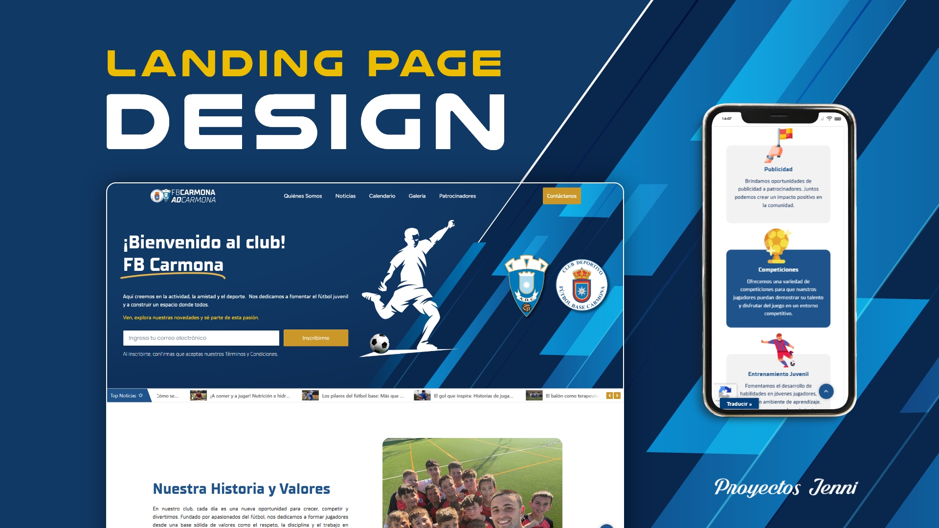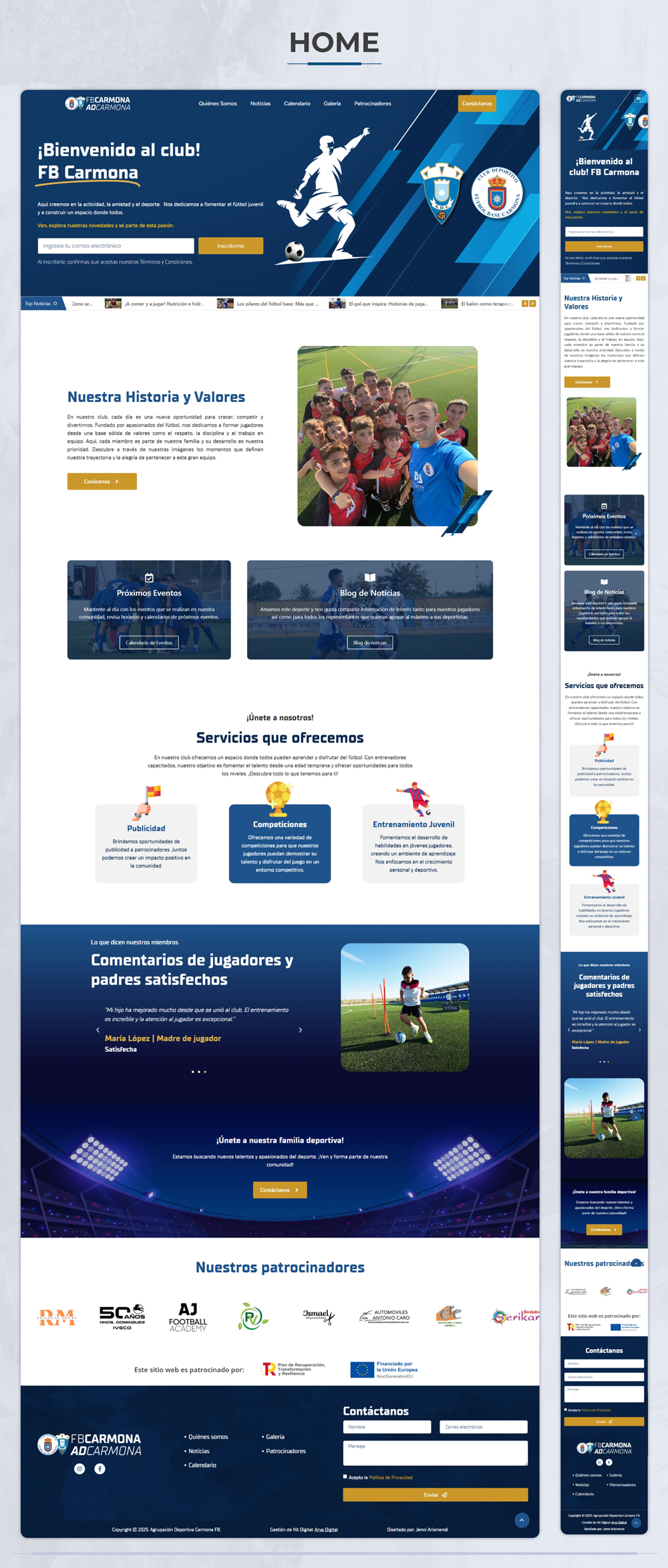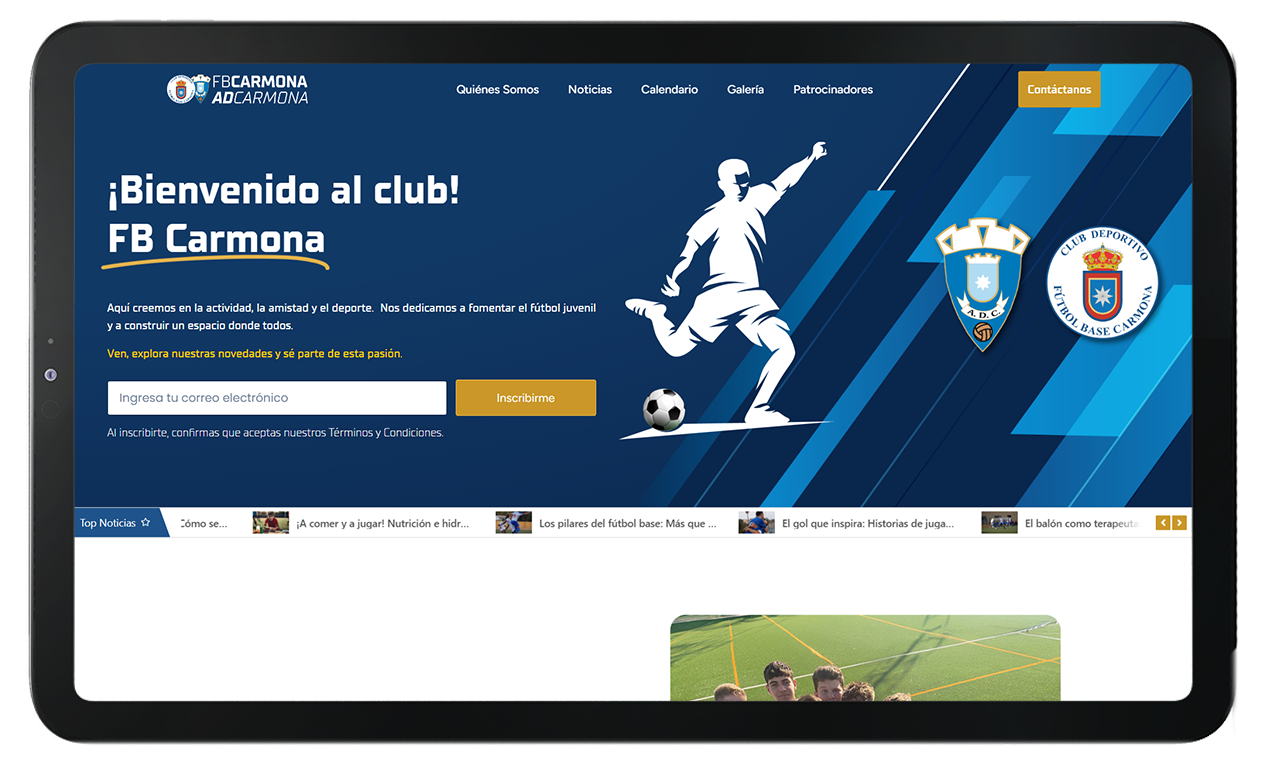 Página web profesional de tipo para la agrupación de Fútbol Base de Carmona, España, como parte del Kit digital.
