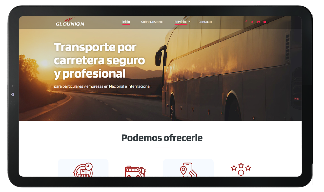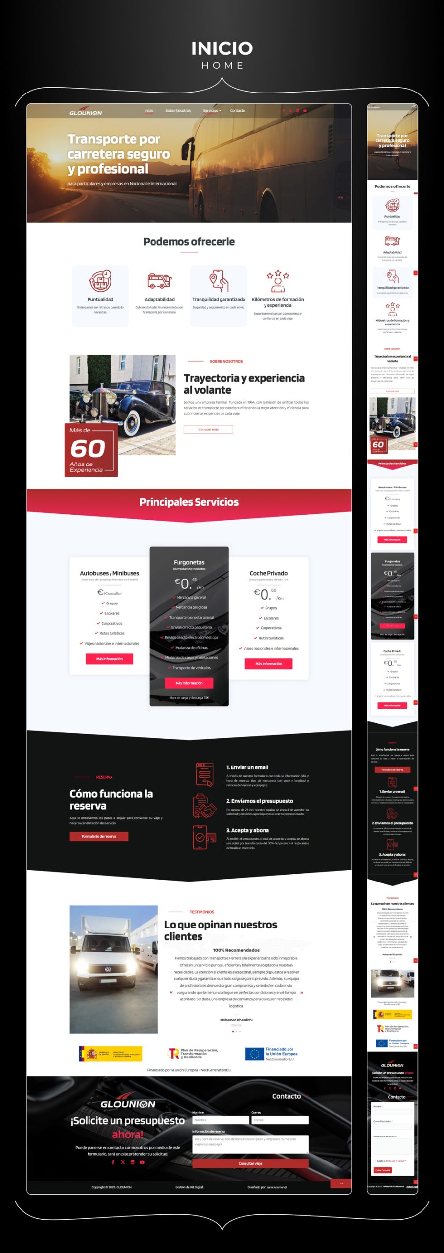Diseño de página web profesional de transporte Herrera con su nueva empresa Glounion como parte del kit digital.