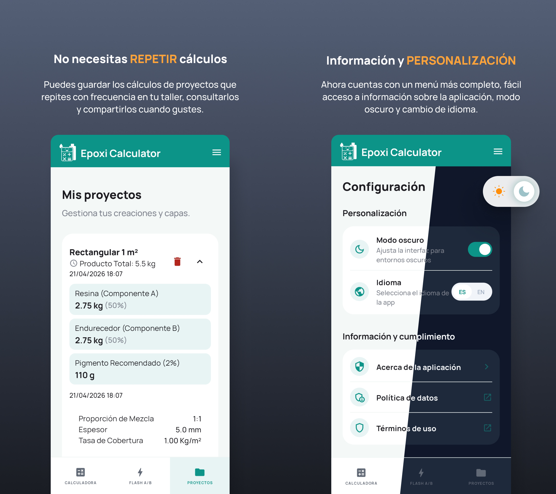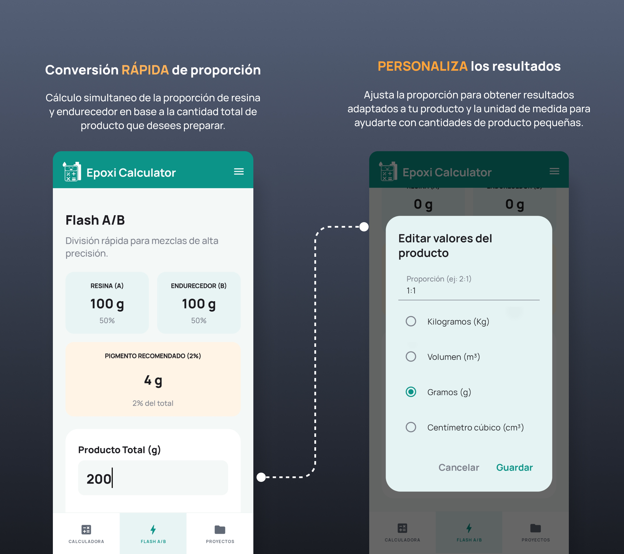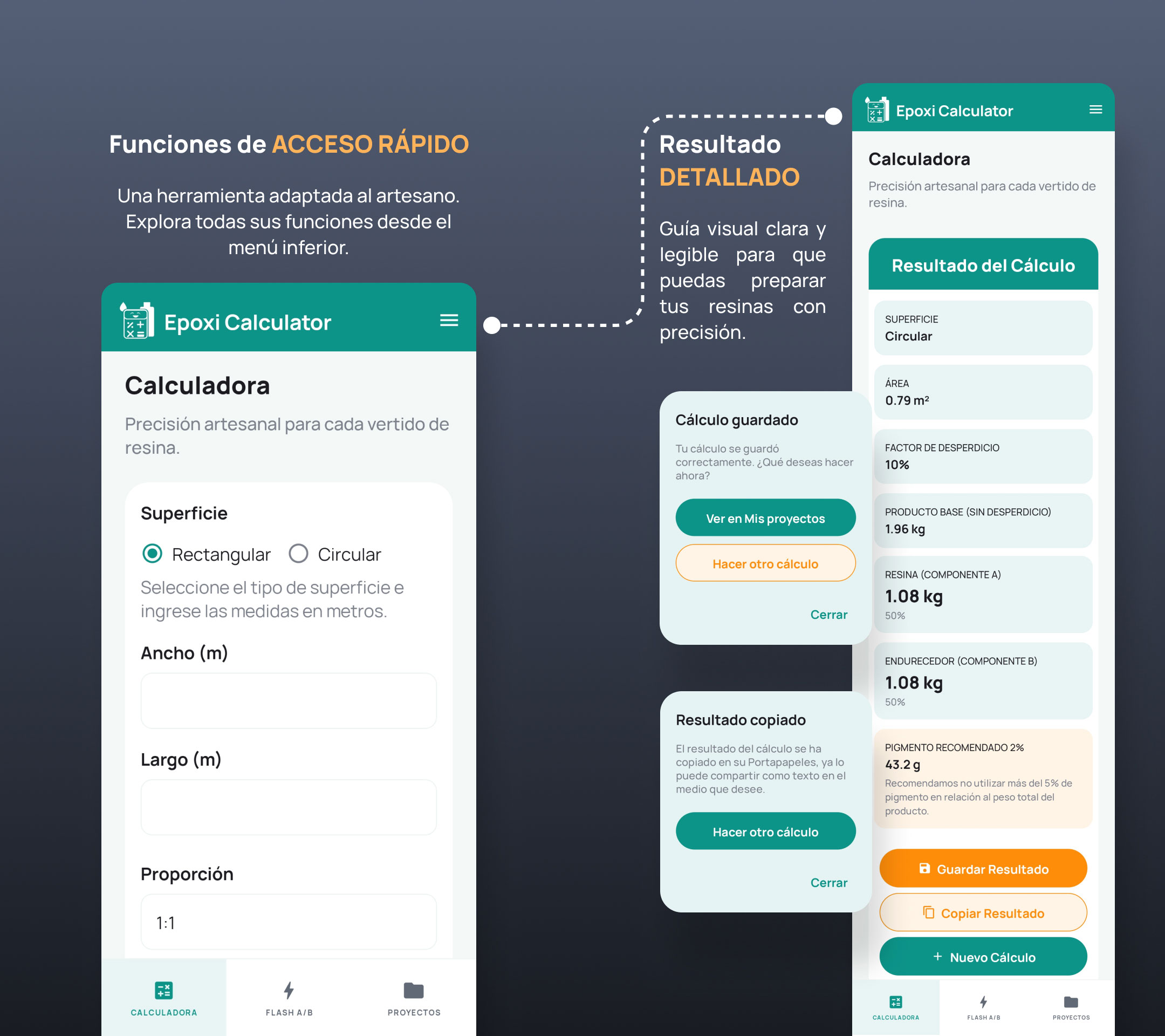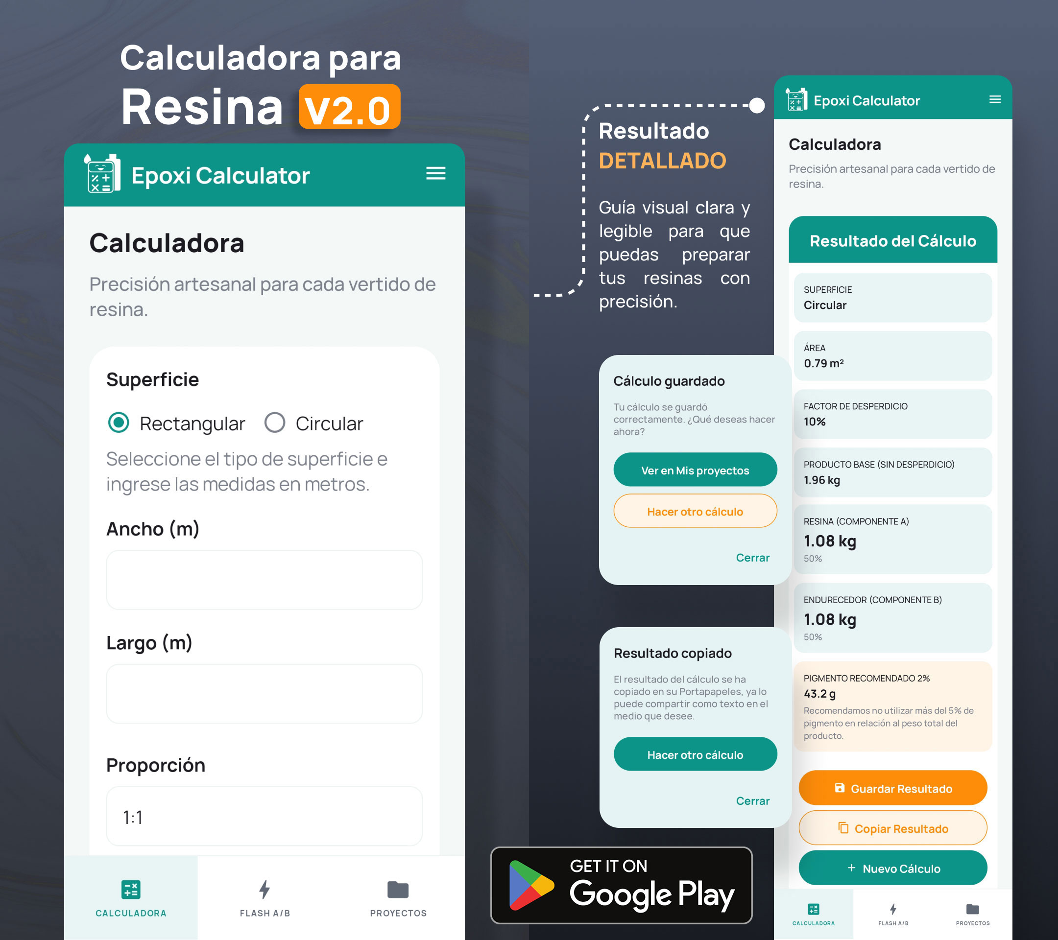 Compartiendo mi pasión por el diseño a otras ramas artísticas, presento una aplicación que permita a los todos los que trabajan con resina epóxica contar con una herramienta efectiva y accesible desde su móvil.